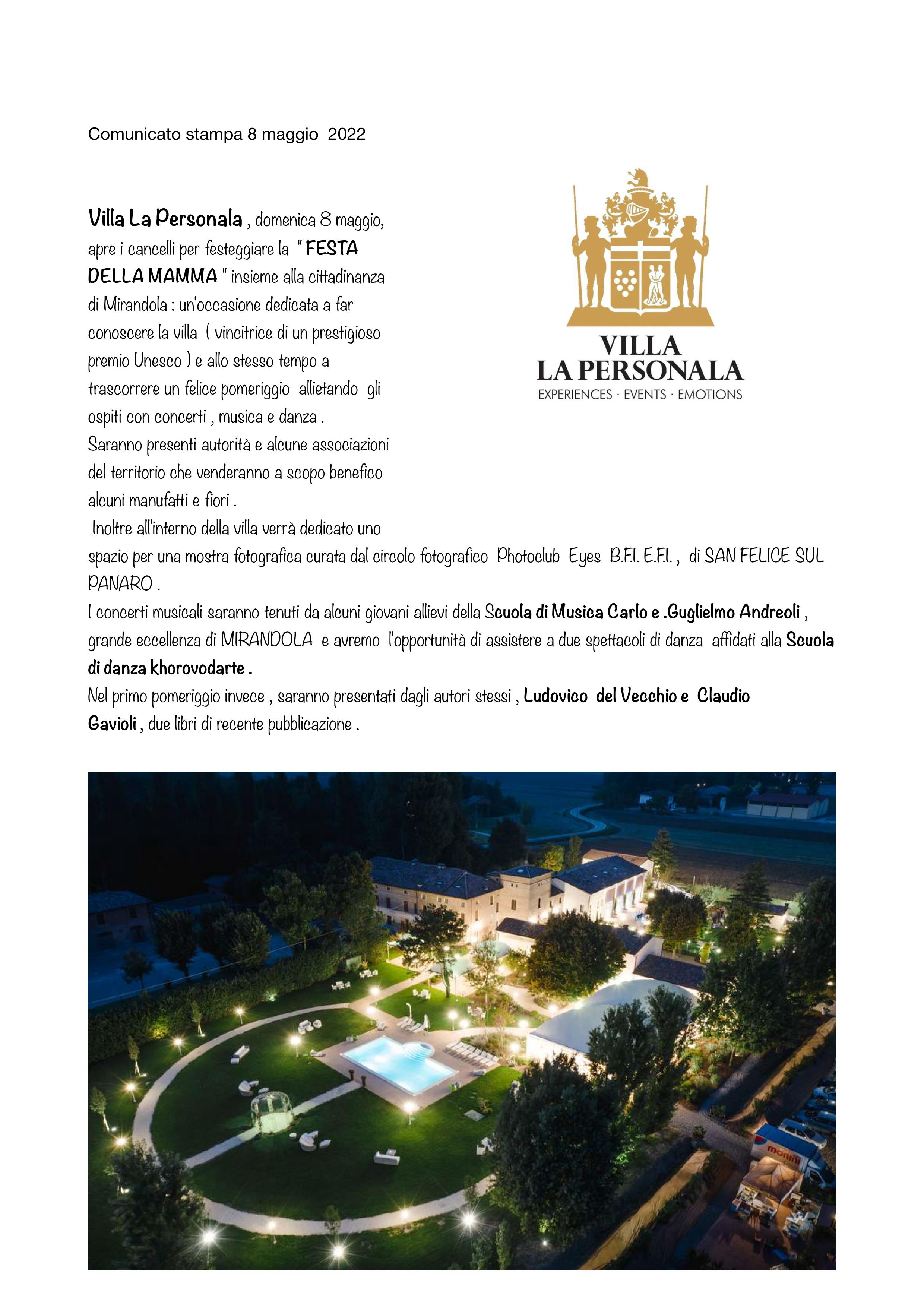 Domenica 8 Maggio – Festa della Mamma in Villa – Tutto il programma