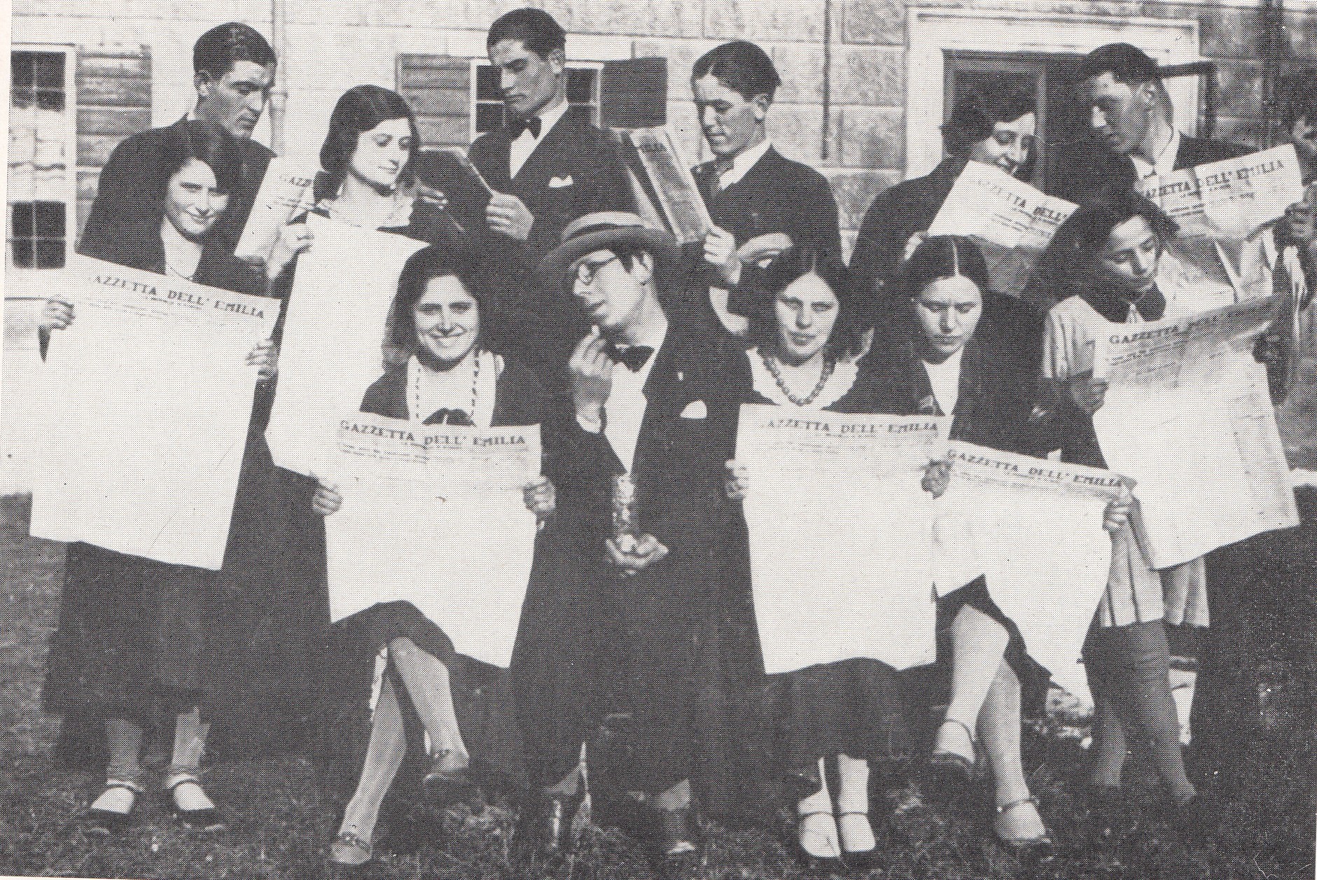 1°a sin.in alto, Spaggiari Loris, Gavioli Iria, Valentini Vilmo, Rolli Mario, Spaggiari Meme e Fattori Acate. 2° sempre a sinistra, Valentini Cesarina, Valentini Amneris, Elmotti Casto, Lana Flora, Fattori Eda e Fattori Maria Laura.