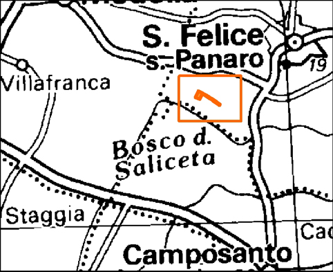 Database topografico Regione Emilia Romagna: Carta Storica IGM 1853; Database topografico Regione Emilia Romagna: Immagini Aerofotografiche ORTOFOTO AGEA 2014; http://geoportale.regione.emilia-romagna.it/it/services/servizi-OGC/servizio-di-consultazione TORELLI R., TURCO A., 1980, Il bosco della Saliceta. Cronache e immagini, a cura di Biblioteche comunali di Camposanto, Cavezzo, Medolla, San Prospero. Prima indagine sulle pubblicazioni a tema ‘Bosco Saliceta’ BERNINI G., GUERZONI A (a cura di). 2014, La cooperativa Bosco della Saliceta e la Cisl di Camposanto, Modena: Cisl Modena FRIGIERI D.. 1987, Il bosco della Saliceta: storia di ieri e di oggi. Come ricordo quel bosco e la nostra campagna. (presentazione di Vilmo Cappi), San Felice sul Panaro: Litotre GORRIERI E. (a cura di). 1957, Piccola proprietà e cooperazione agricola: l’esperimento della cooperativa Bosco della Saliceta, Modena: Unione sindacale provinciale CISL: Cooperativa Bosco della Saliceta MANFREDINI F. (tesi di laurea; rel.: Fanny Guarino Cappello). 1974-1975, Un intervento anticipatore della riforma agraria: il bosco della Saliceta a Camposanto di Modena, Urbino: Università degli studi [Si trova a MODENA CENTRO CULTURALE F.L. FERRERI] BOSCHI V., VICINI C., (tesi di laurea), I terreni del comprensorio dell’ex-bosco della Saliceta nel comune di Camposanto, Modena [Si trova a MODENA Accademia naz. di Scienze Lettere Arti – BOLOGNA Biblioteca dell’Accademia nazionale dell’Agricoltura] Testo a stampa (antico), 1799, Notificazione. A preservare il bosco della Saliceta da que’ danneggiamenti, che, malgrado le provvidenze, e proclami in altri tempi pubblicati, vengono non di rado inseriti al bosco medesimo, … [Si trova a MODENA – Biblioteca Estense Universitaria] FESTANTI LEONARDO (tesi di laurea in Architettura, relatori Armando Barp, Matelda Reho). 1996, Il Bosco della Saliceta, una presenza paesaggistico-ambientale che sopravvive alla sua stessa fisicita: ricerca delle tracce del passato e analisi delle possibilità di ripristino [Si trova a MODENA Centro Culturale F.L. Ferrari] PUCCI L.. 1996, Poveri e mannaie: l’assalto al bosco della Saliceta (San Felice), 1796-1798 [Si trova a BOLOGNA, Biblioteca Archiginnasio]