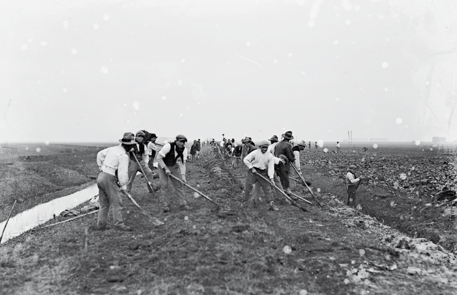 A partire dagli anni Ottanta del diciannovesimo secolo, un duro lavoro di vanga e carriola permise di scavare scoli ai lati di campi e canali e di conferire agli appezzamenti una caratteristica “baulatura”, che era necessaria a far defluire le acque. A questa lotta per rendere i terreni coltivabili, si aggiunse quella contro le periodiche esondazioni del Po e dei suoi affluenti. Secchia e Panaro rappresentavano infatti da sempre una preziosa risorsa per l’irrigazione ma anche una minaccia, in una zona caratterizzata da un clima molto umido e piovigginoso agli estremi dell’anno ma asciutto e scarso di piogge nei mesi centrali.