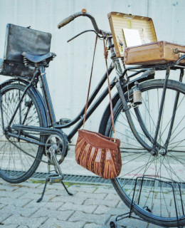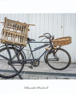 Questa è una bici particolare. E’ stata la prima delle biciclette di Giorgio, quella che l’ha spinto a collezionare le bici degli antichi mestieri. Perché suo padre era un pollivendolo…….