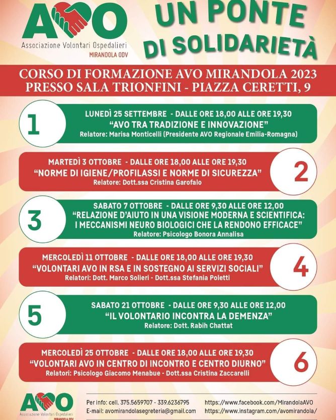Da lunedi 25 Settembre a Mirandola – Corso di formazione AVO