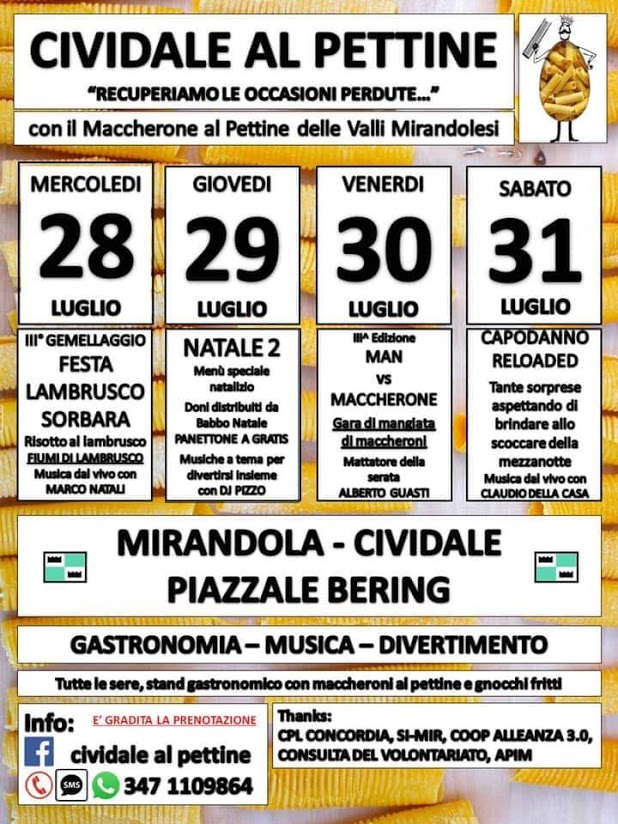 Da Mercoledì 28 Luglio a Cividale – “Cividale al Pettine” – 4 Giorni per recuperare il tempo perso