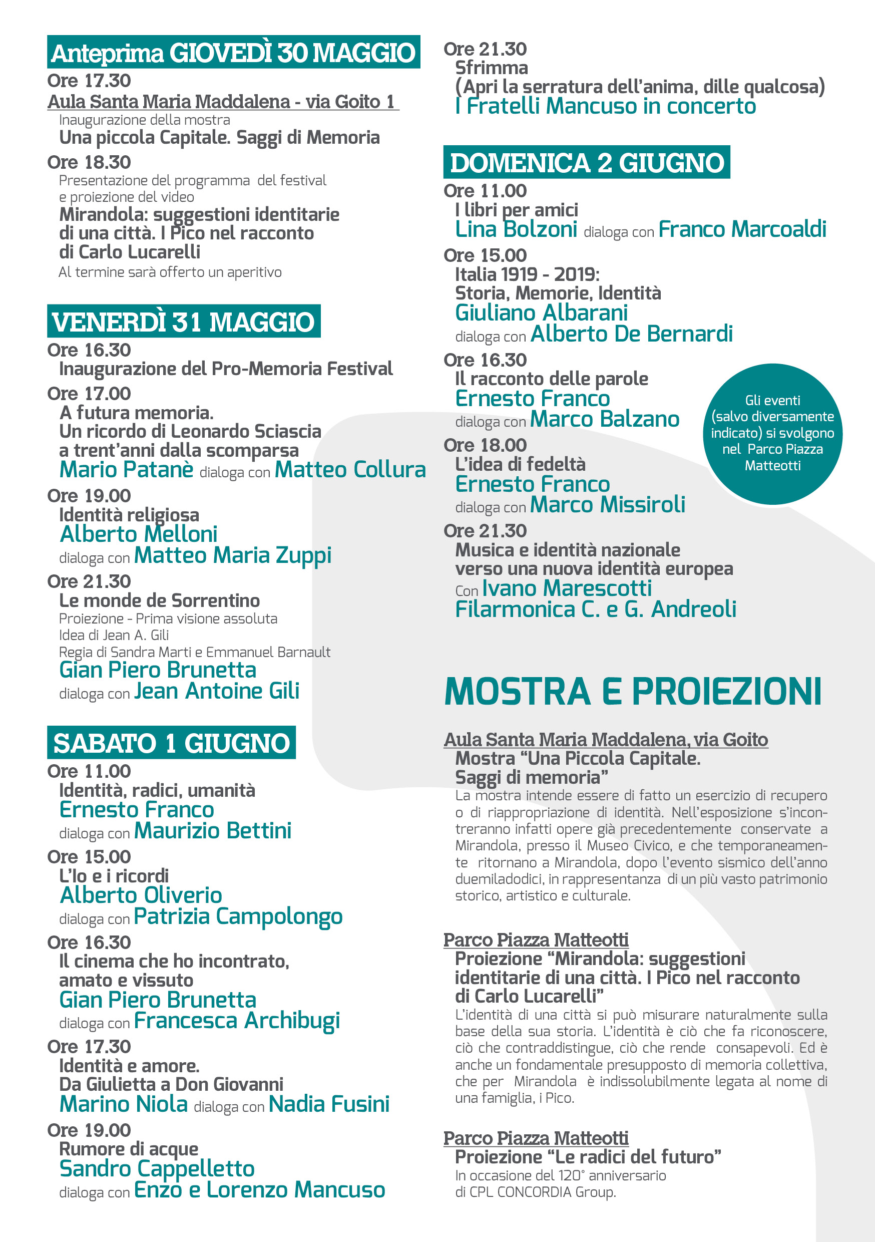 Dal 30 Maggio – Pro Memoria Festival – Il programma