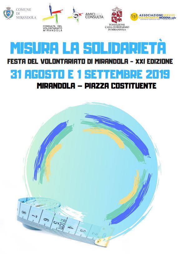 La ventunesima edizione della Festa del Volontariato di Mirandola si terrà sabato 31 agosto e domenica 1 settembre, in Piazza Costituente a Mirandola (MO).