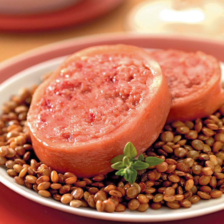 Da questa considerazione nasce il successo degli zamponi e dei cotechini targati Modena, che di recente hanno ottenuto il riconoscimento comunitario della IGP, che significa Indicazione Geografica Protetta, un marchio di sicura garanzia che ovviamente vale in tutti i paesi dell’Unione Europea. Per concludere la lunga parentesi dedicata allo zampone, è giusto ricordare che qualche presunto buongustaio consiglia di non acquistare lo zampone precotto tagliato a fette. Probabilmente questi scettici hanno ragione: semmai sarebbe da mangiare così com’è, senza scaldarlo, come una normale fetta di salame. Ma una fetta di zampone freddo sarebbe come un’automobile senza motore, non vale nulla.