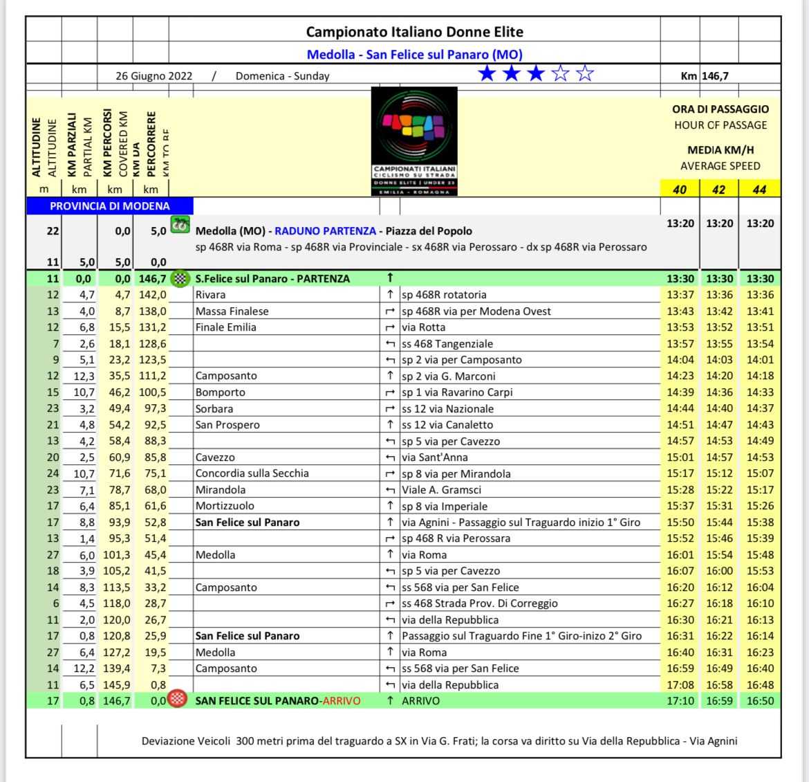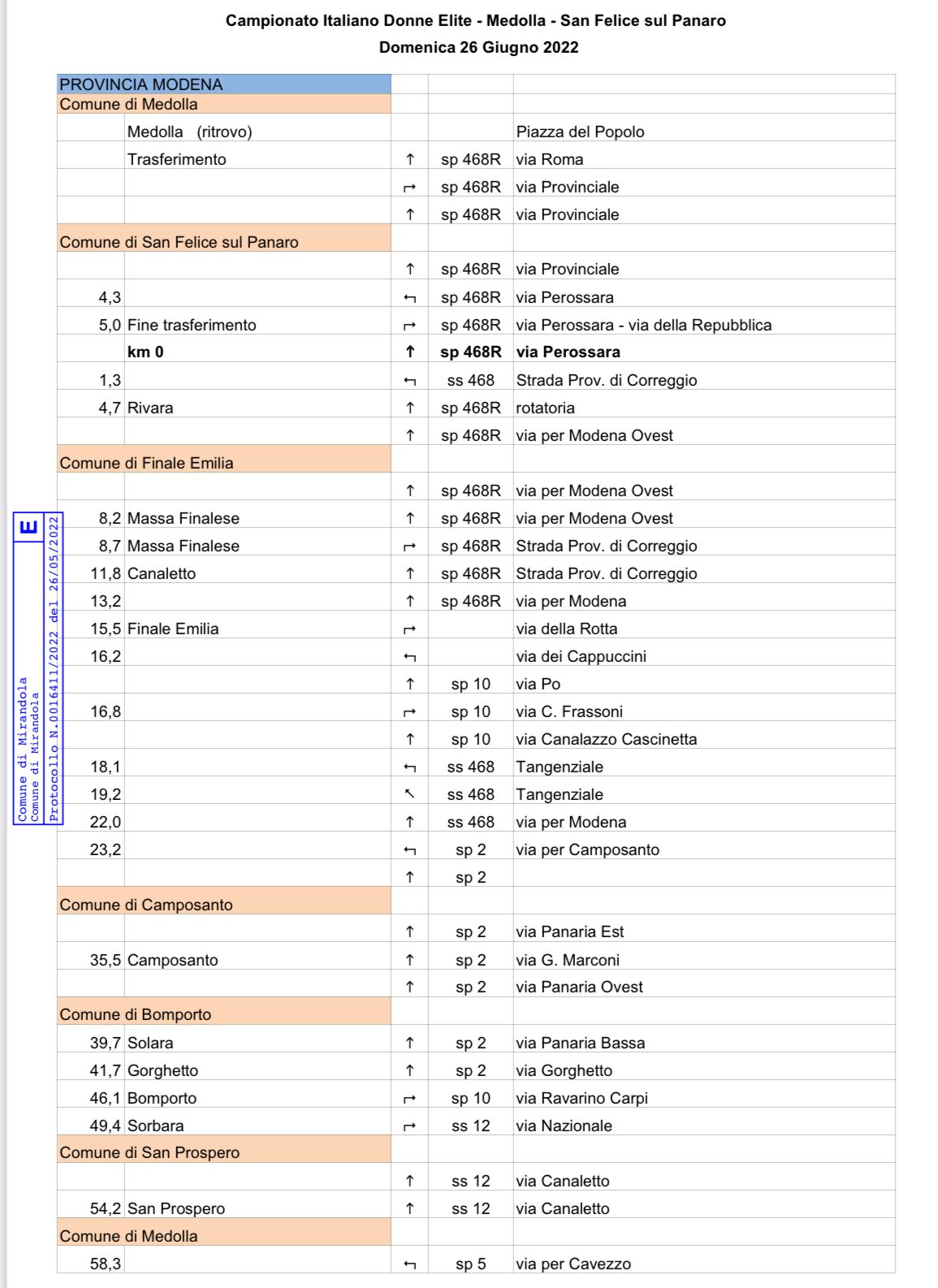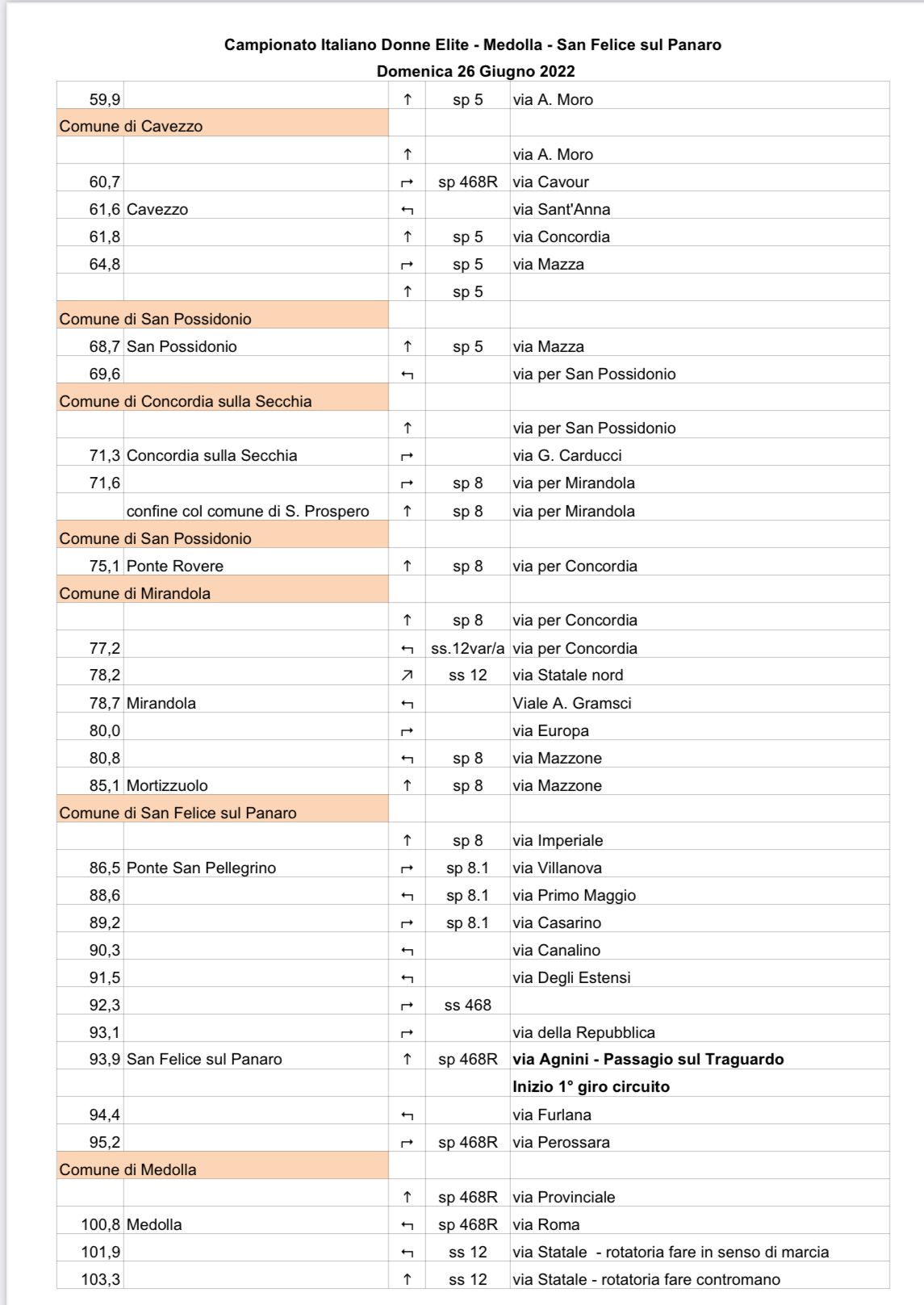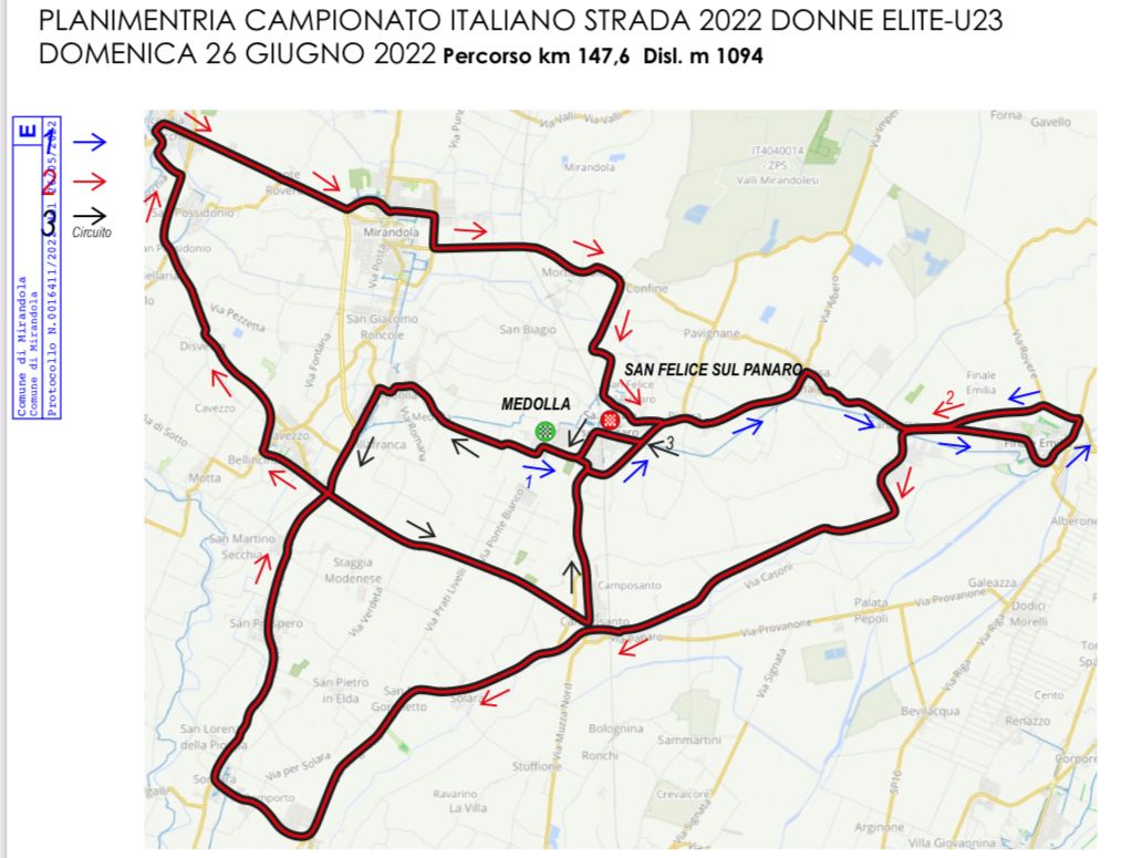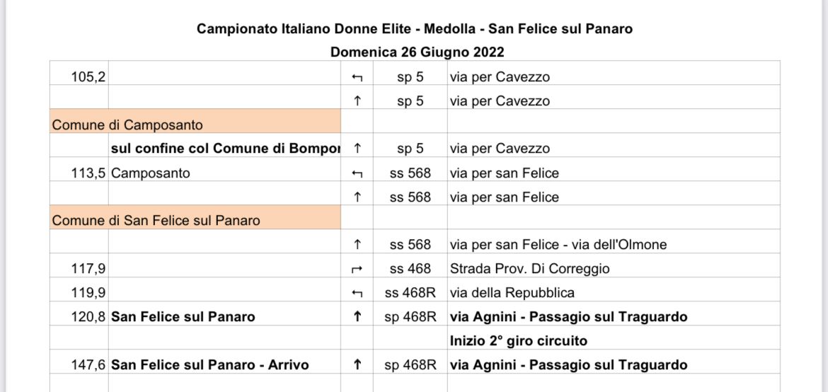 Tra queste, appunto, il Campionato italiano Donne Elite e Under 23, che domenica 26 giugno andrà a toccare simbolicamente i territori dell’Unione Comuni Modenesi Area Nord: Camposanto, Cavezzo, Concordia, Finale Emilia, Medolla, Mirandola, San Felice sul Panaro, San Possidonio e San Prospero.