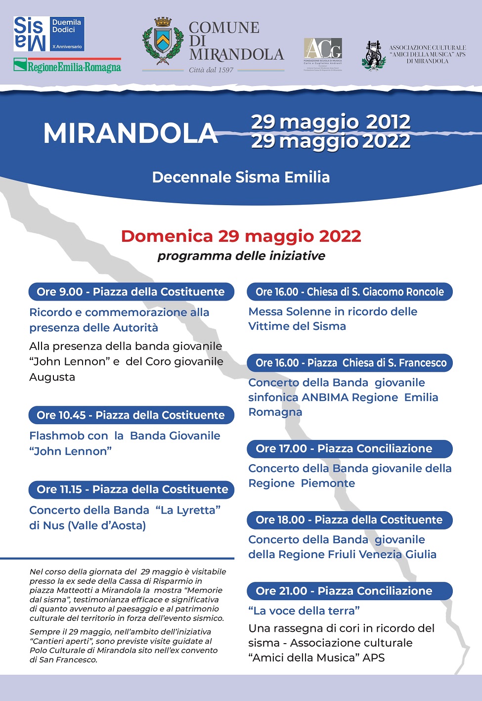 Domenica 29 Maggio a Mirandola – Programma delle iniziative del Decennale del Sisma
