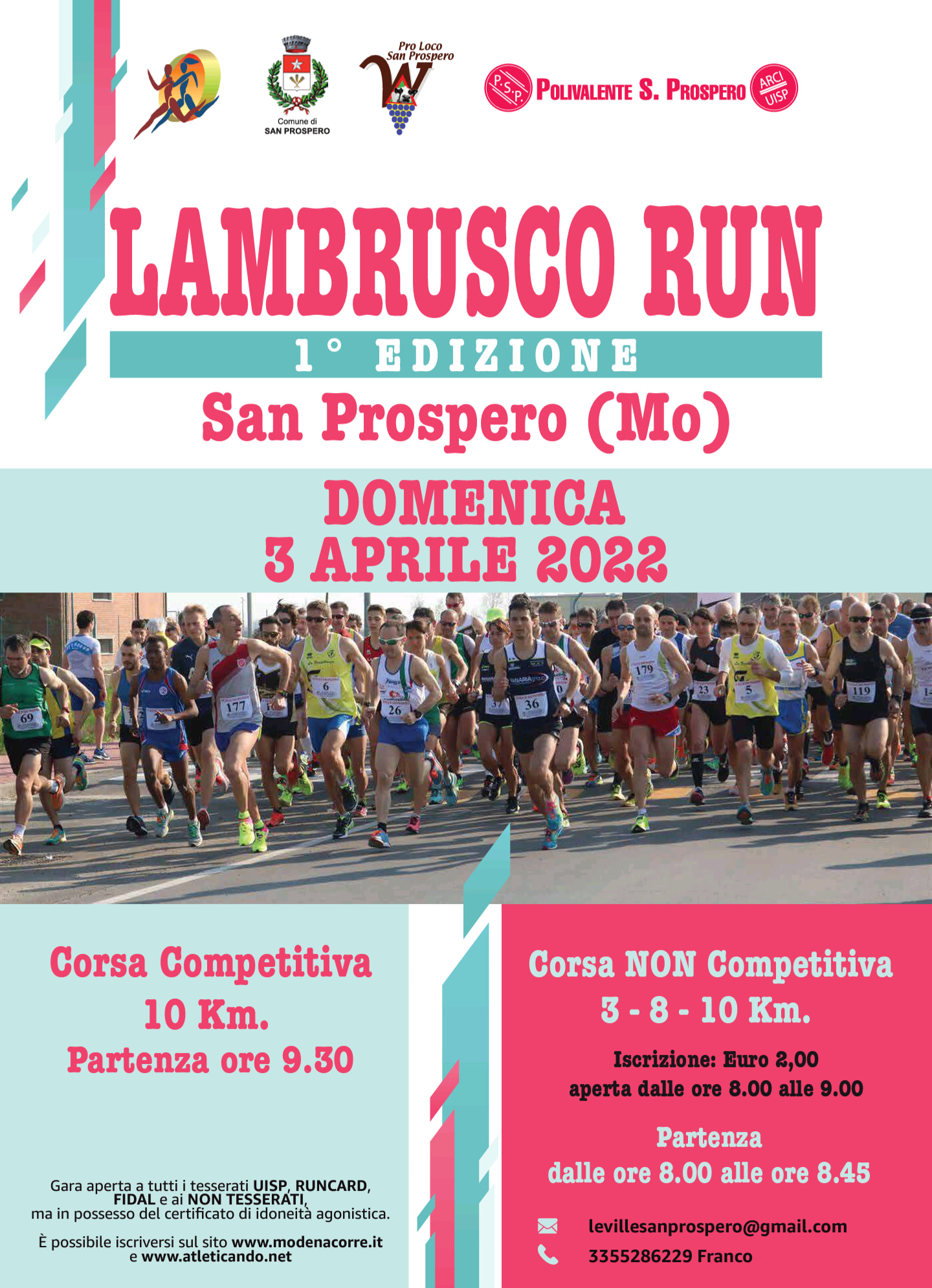 Si terrà domenica 3 aprile a San Prospero la prima edizione della Lambrusco Run, corsa podistica suddivisa in due tracciati, uno per una gara competitiva e uno per una corsa non competitiva.