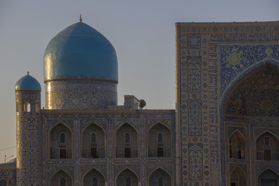 Dalla modernità di Tashken al fascino senza tempo di Bukhara e Samarcanda, l’Uzbekistan è una meta libera dal turismo di massa. È il paese dei bazar esotici, delle cittadelle seminascoste dal deserto, dei laboratori di lavorazione della seta dei cortili dove le giovani  ragazze ricamano  con grande perizia tappeti e tovaglie, dei tramonti dorati.  Un paese nel quale è notevolmente presente la tradizione religiosa islamica, con le tante moschee che mescolano elementi architettonici arabeggianti e tipici di quest’angolo remoto dell’Asia, delle cupole turchesi. Sono proprio questi elementi che ti fanno sentire in un luogo a parte, in una piscina a cielo aperto, in un mondo rilassante dove regna la calma assoluta anche grazie ai ritmi di vita degli abitanti. Le tantissime cupole bluette intarsiate dalle mille sfumature di blu punteggiano il cielo di mille tonalità azzurrate, le strette viuzze completamente tappezzate di piastrelle  celesti, turchesi, verde mare , blu, bluette,
