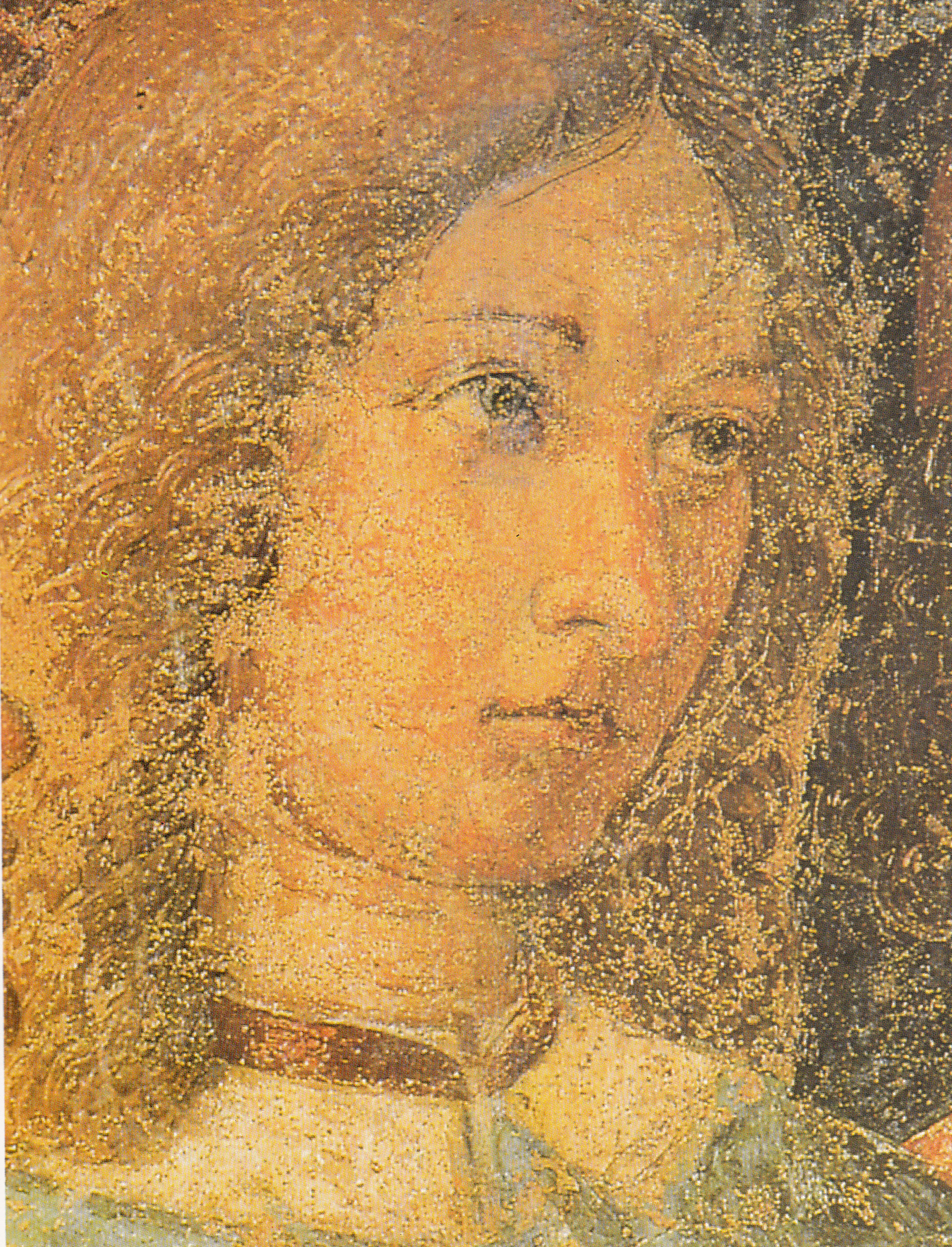 Il ritratto è stato estrapolato e ingrandito dal grande affresco “Processione e miracolo del Santissimo Sacramento” di Cosimo Rosselli che si trova a Firenze nella Chiesa di Sant’Ambrogio