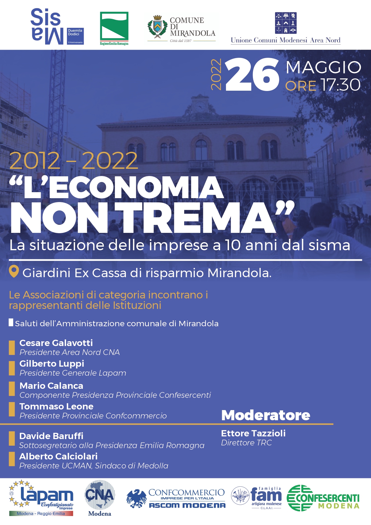 Giovedì 26 Maggio a Mirandola – 2012/2022- L’economia non trema.