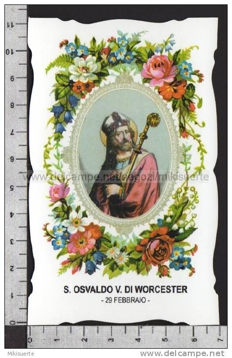 Sant’Osvaldo visse nel X secolo, in Inghilterra, e fu nipote di sant’Oddone arcivescovo di Canterbury. Dopo gli studi preferì diventare monaco benedettino e si trasferì in Francia in una abbazia sulla Loira. Tornò in Inghilterra alla morte dello zio e poi partecipò ad un viaggio a Roma col vescovo di York. Venne poi eletto vescovo di Worcester dove venne ammirato per la sua opera pastorale e per la disciplina imposta al clero della diocesi. Visto che al tempo il clero regolare poteva sposarsi, un po’ alla volta lo sostituì con monaci benedettini in modo che la cura della propria famiglia non sostituisse quella per il popolo. Lo fece con tanta delicatezza che il sovrano inglese volle nominarlo arcivescovo di York. Resse le due diocesi per vent’anni pieni di opere buone e splendidi esempi di carità materiale e spirituale per tutti i suoi collaboratori. Morì il 29 febbraio del 992, ed in quel giorno viene ricordato, ma per non fargli torto negli anni non bisestili la commemorazione viene anticipata di un giorno.