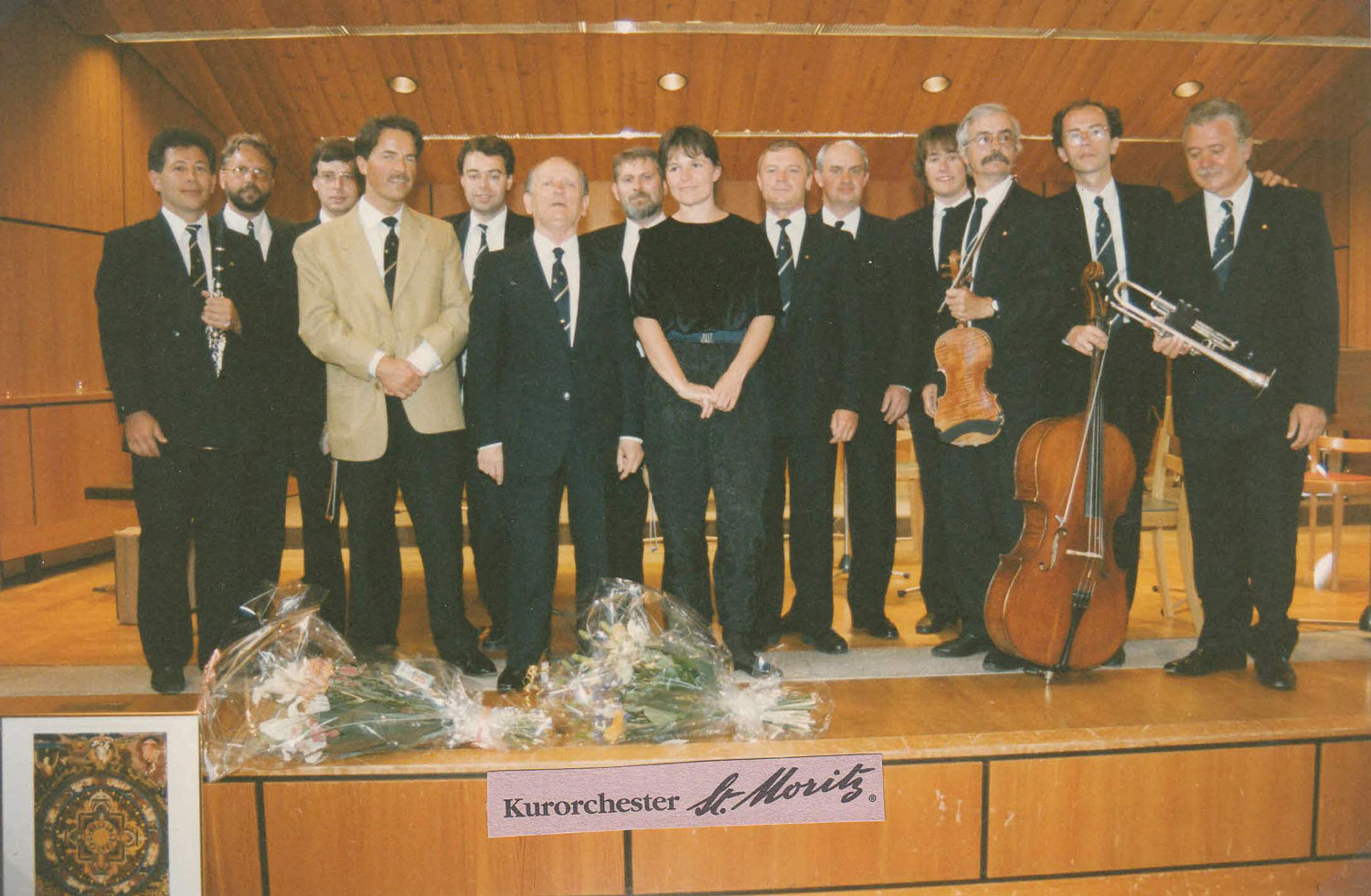 Nel 1953 entra nella “Kurorchestra di St.Moritz” ,con le funzioni di pianista, insieme a ben 25 musicisti provenienti dalle orchestre stabili di Berna,Zurigo e Basilea. Nel 1966 ne assume la direzione che manterrà fino al 1992. Se nelle estati lavorava a St.Moritz, il resto dell’anno lo vedeva impegnato alle Scuole Medie F.Montanari come insegnante di musica oppure nel suo studio in casa con i suoi giovani allievi.