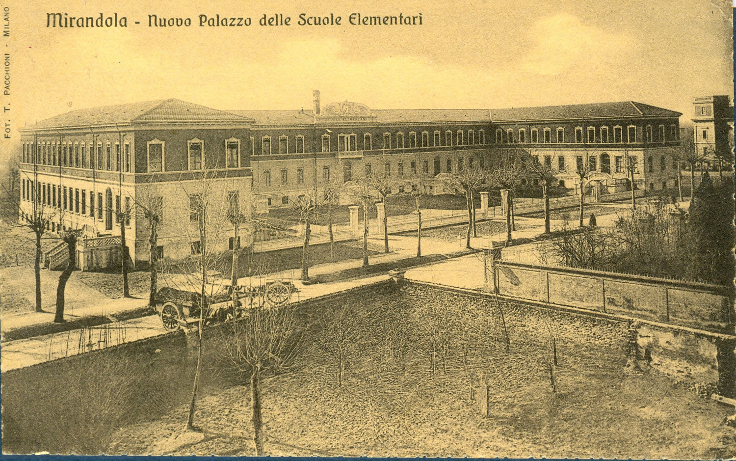 Nel 1905 nasce a Mirandola l’esigenza di un nuovo edificio per la scuola elementare, che viene progettato dall’ingegner Vischi il quale scrive: “nella relazione che accompagnava il progetto, dicevo d’essermi studiato di dare un edificio che soddisfacesse alle moderne esigenze della pedagogia e dell’igiene, evitando ogni artificiosità e quindi abolendo completamente il lusso inutile e non compatibile colle esigenze dei limitati Bilanci Comunali. I benevoli giudizi dati sulla riuscita della costruzione mi fanno convinto di essere riuscito colla modesta opera mia nell’intento prefissomi.”