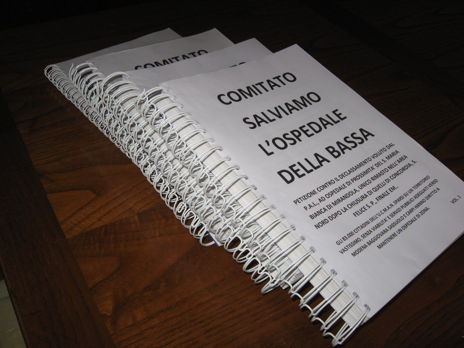 La petizione ( 4 volumetti ) con 6.850 firme, presentata in Comune dal Comitato
