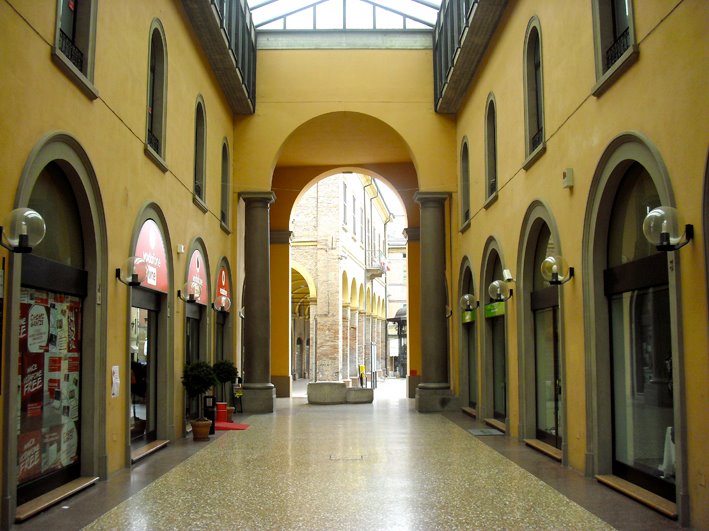 La prima sede del Monte non è purtroppo nota. Essa fu trasferita nel 1600, per volere di Fulvia, ma dopo 10 anni dalla sua morte, in una casa dove ora c’è la Galleria, tra piazza Mazzini e via Pico. L’edificio, anche in seguito a danneggiamenti provocati dalle numerose guerre, subì varie modifiche nel corso dei secoli fino al 1929 quando prese la forma odierna di Galleria. Dopo la guerra iniziò per l’edificio un lento degrado dovuto a mancanza di manutenzione, ma gli uffici del Monte vi rimasero funzionanti, come appendice della Cassa di Risparmio, fino a circa il 1965/1966. Solo dopo alcuni anni la Cassa di Risparmio ha generosamente ridato ai Mirandolesi una Galleria restaurata e di nuovo agibile.