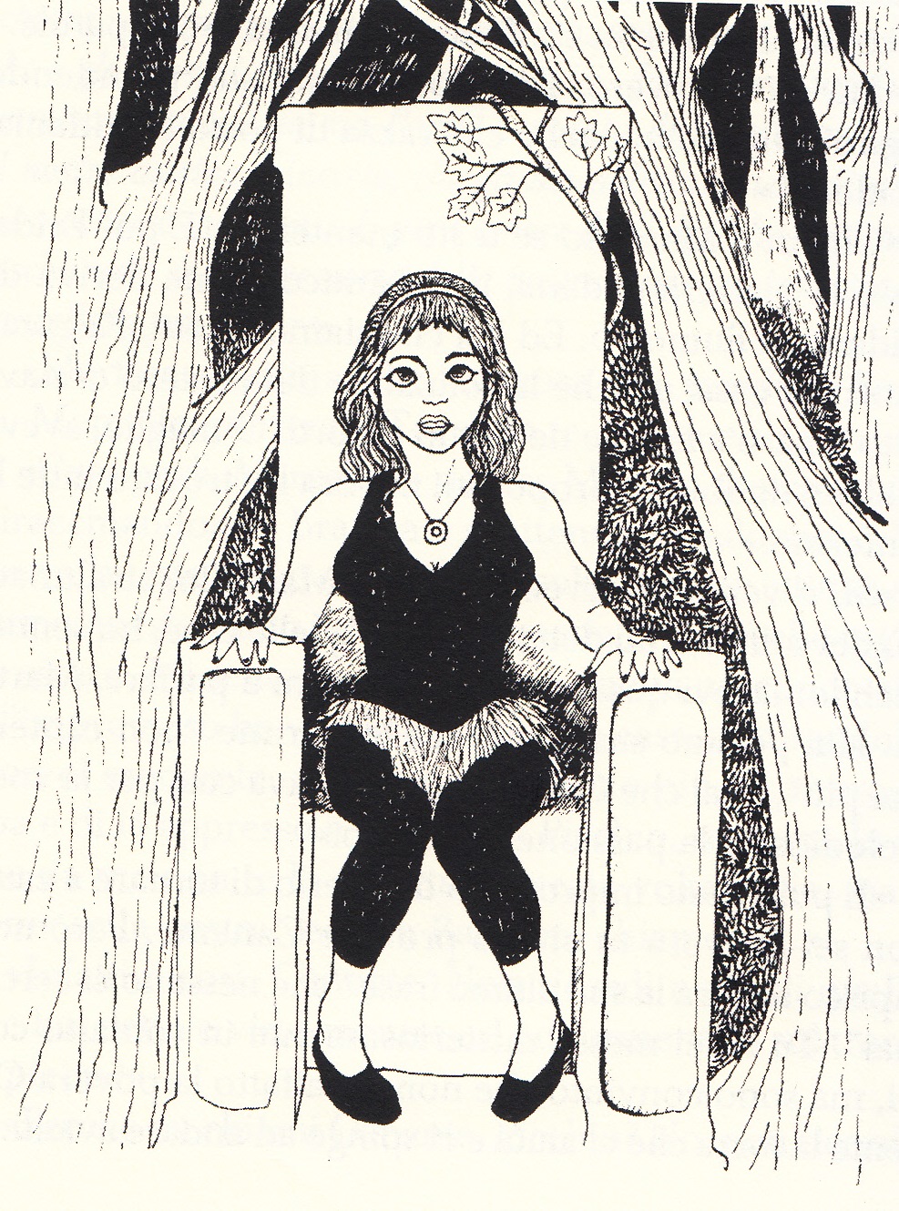 I tre giunsero ben presto in una piccola radura, dove pochi massi antichi erano sopravvissuti all’incuria del tempo. A dire il vero, non vi era niente di particolar­mente significativo, se non un maestoso trono di pietra scolpita, i cui rilievi erano ormai quasi del tutto irricono­scibili per l’azione dei secoli e degli eventi atmosferici.
