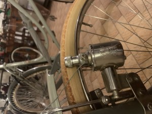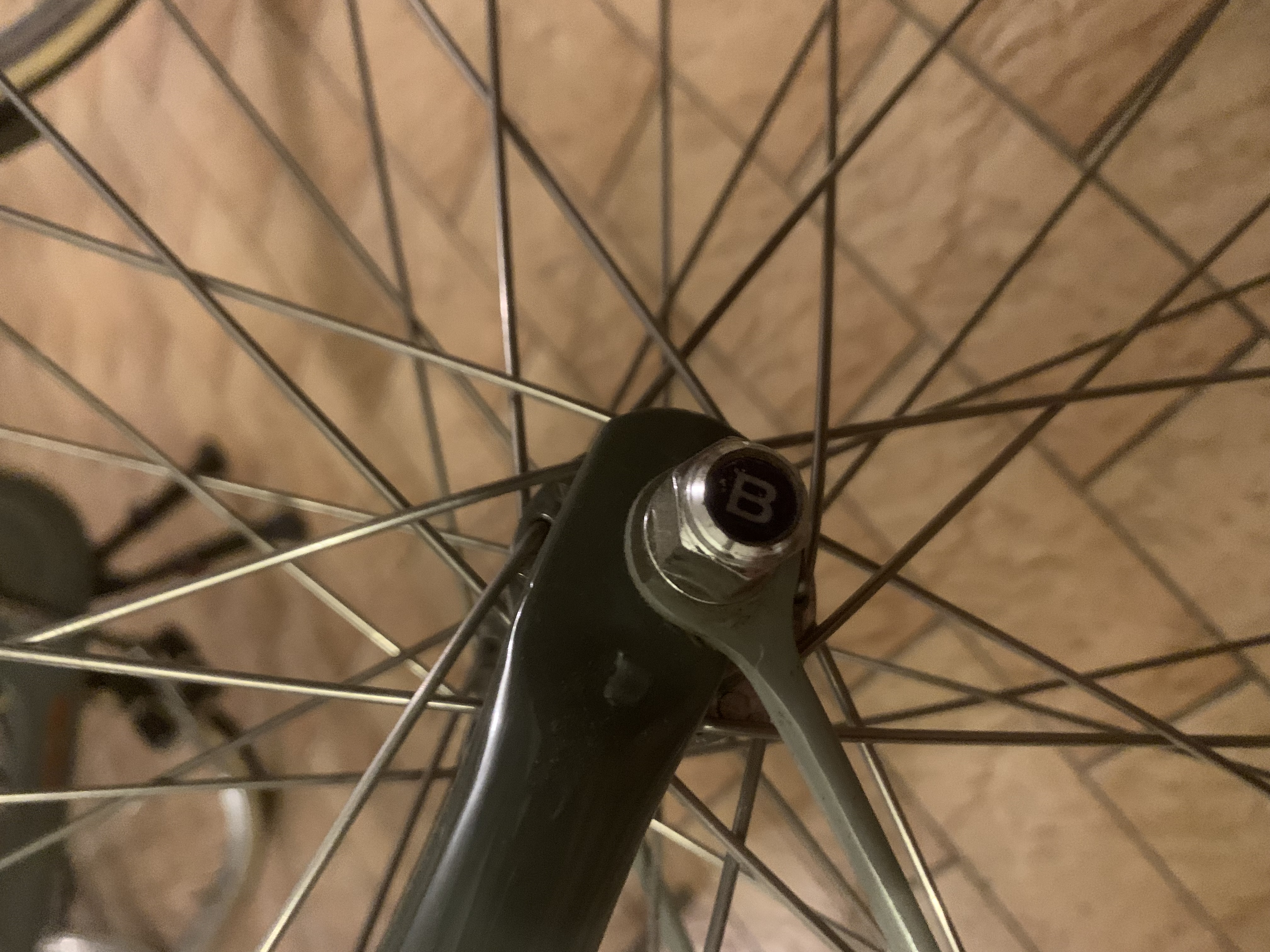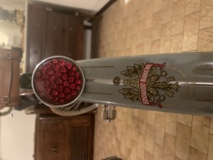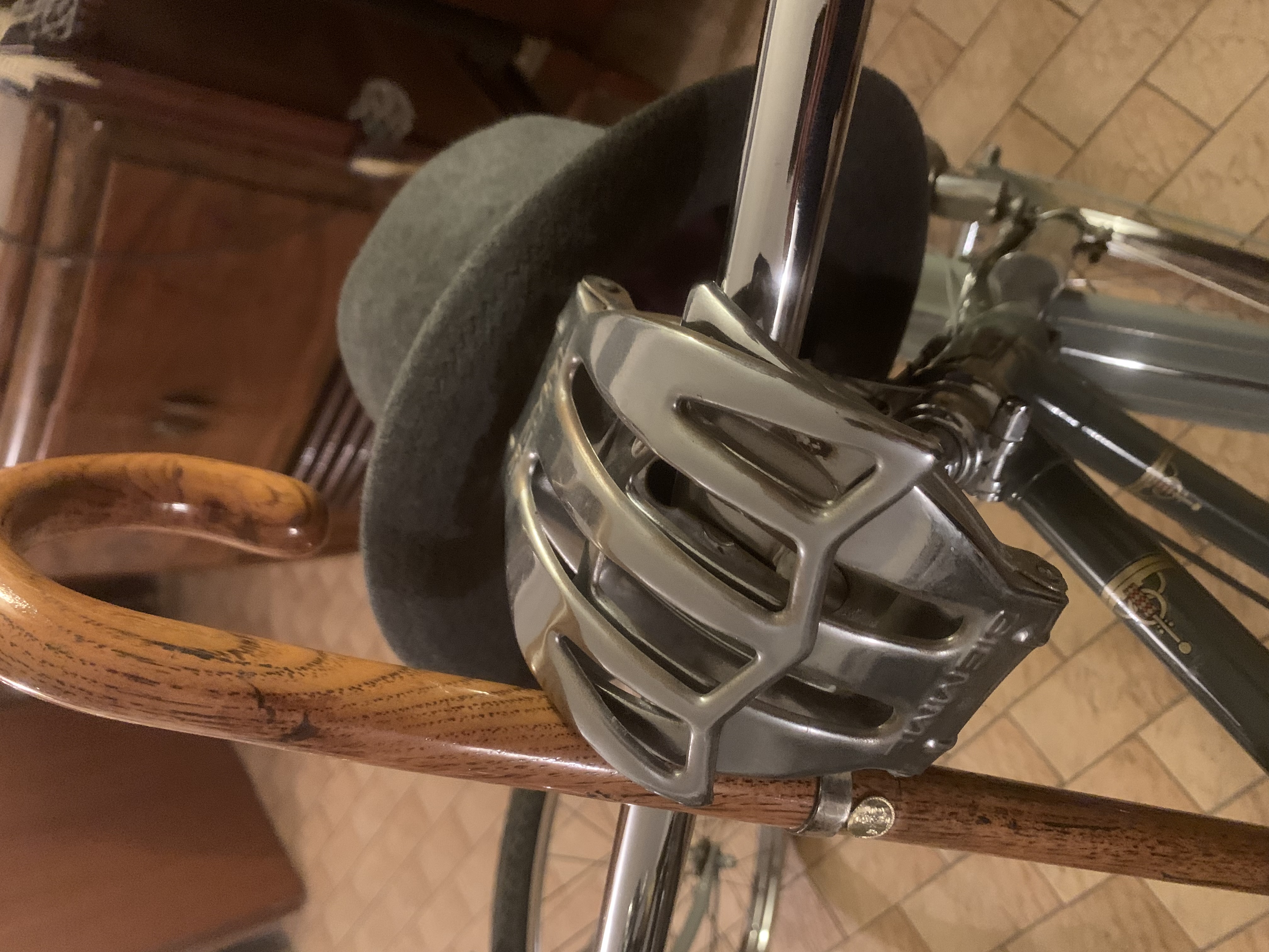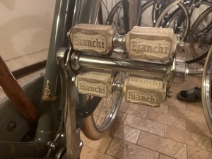 La bici, come ogni Bianchi che si rispetti, ha il telaio numerato ed è marcata su ogni singolo elemento. Leve, pedali, mozzi, carter, persino il campanello, montato su richiesta, e la gemma posteriore a grano di riso, per dare un effetto madreperla. Solo il fanale è Radius, perché la Bianchi non fa fanali, e la sella una Brooks.