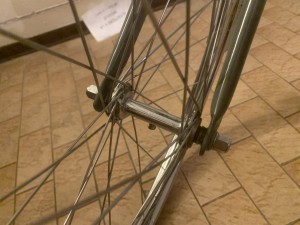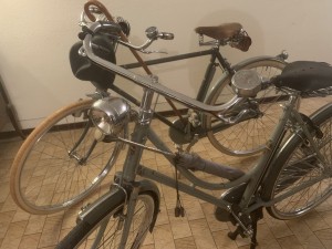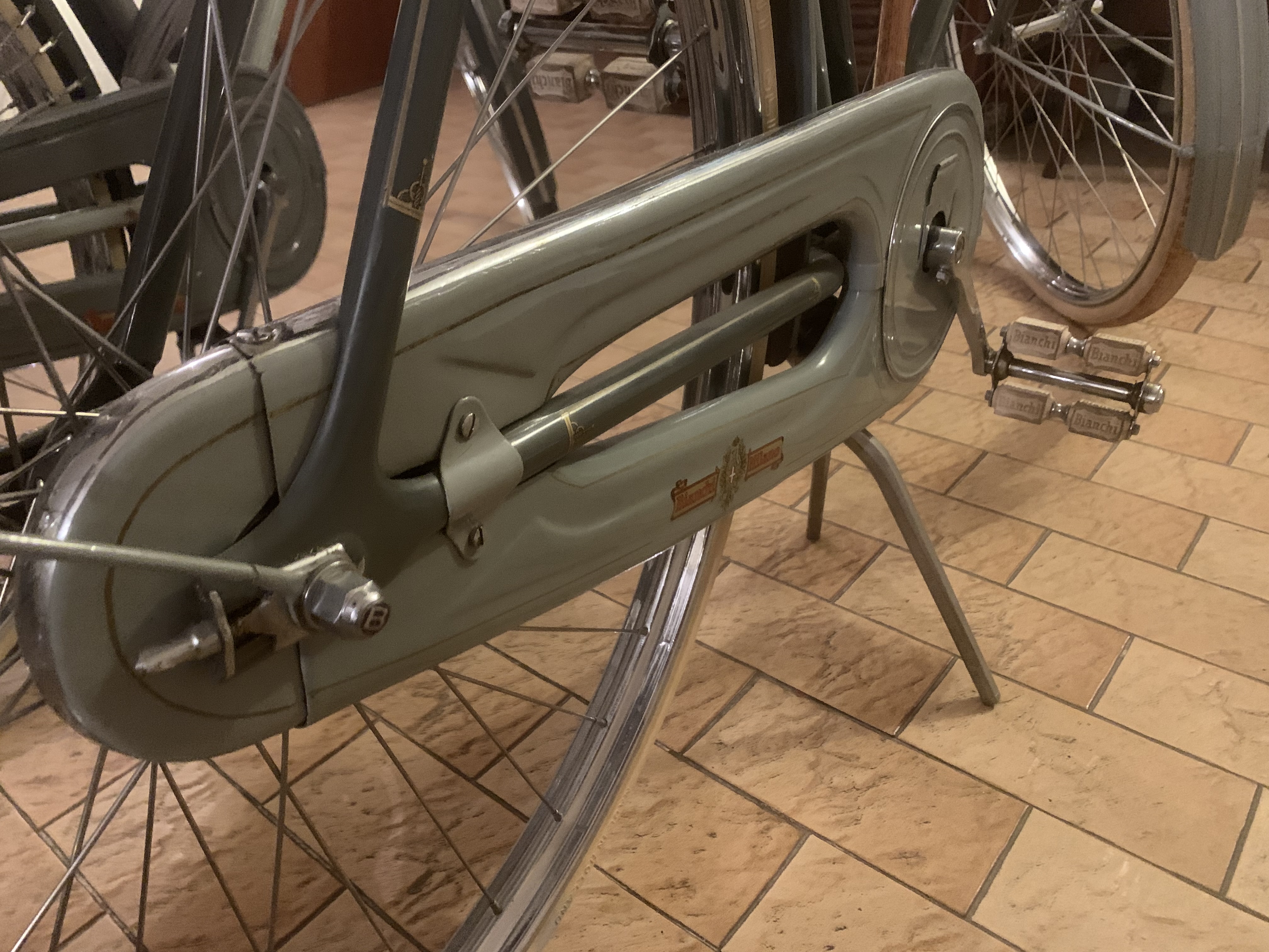 Nella sua collezione Giorgio ha poi accoppiato la bici del fattore con un modello analogo della Bianchi da donna, in cui gli stessi due colori chiaro e scuro si invertono nel telaio. Immaginando il fattore e la sua consorte percorrere con eleganza, e un po’ di superbia, le vie principali del paese.