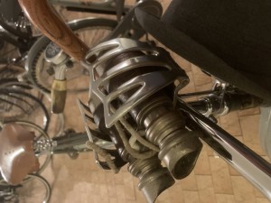 Il binocolo era perciò il suo principale strumento di lavoro, alloggiato sul manubrio e tenuto fermo da una robusta “manina”, il portaoggetti tanto in voga agli inizi del ‘900, pensato per trasportare comodamente il quotidiano, più snello ed elegante nelle bici di classe. Un binocolo per osservare anche non visto e un orologio per controllare i tempi di lavoro e decurtare dalle paghe quelli inoperosi.