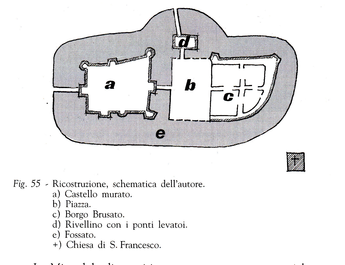 La città medioevale era costituita, come altrove si è detto, da due abbastanza vasti insediamenti sorti uno a nord e l’altro a sud del Castello chiamati rispettivamente Borgo di Sotto e di Sopra.