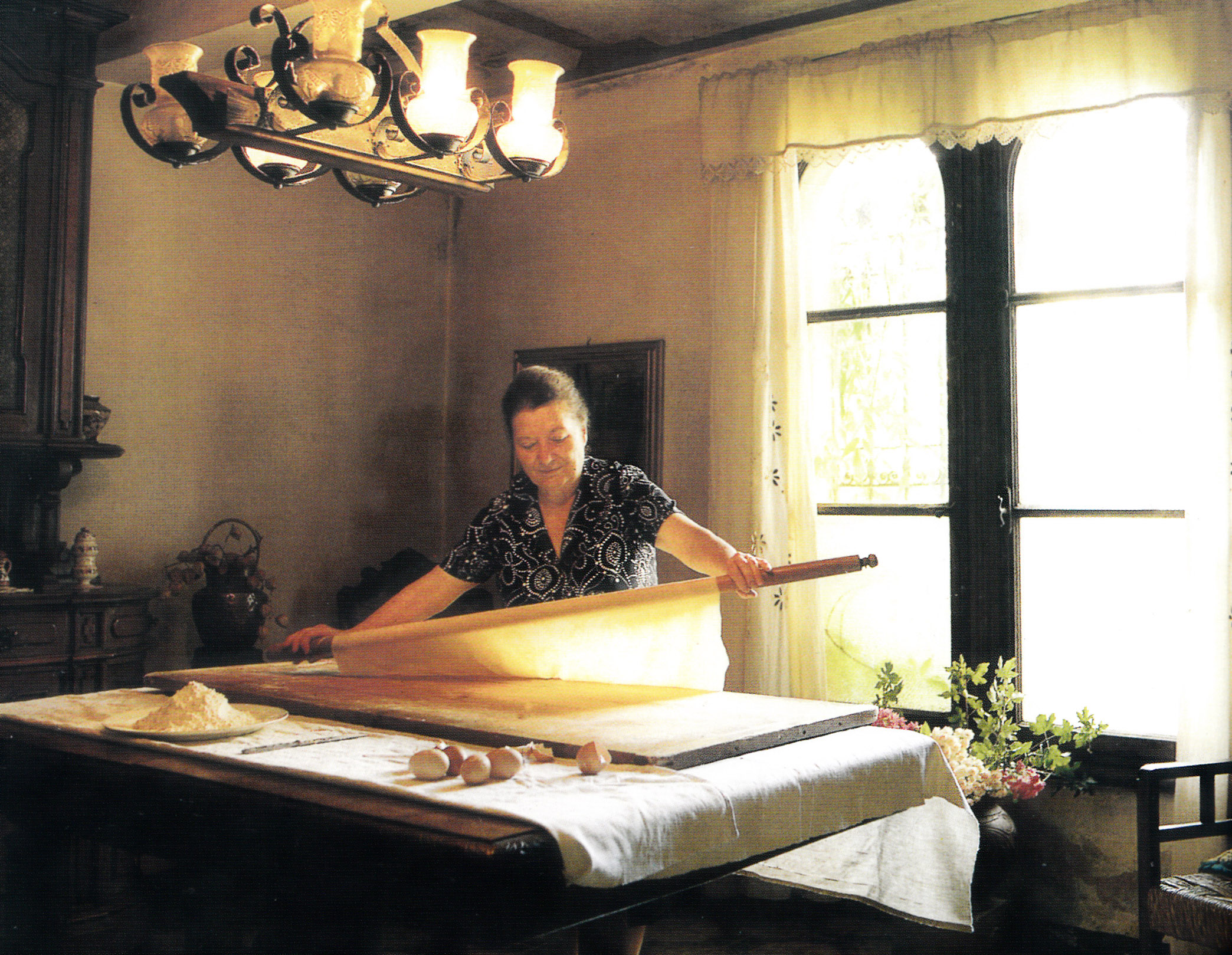 La massaia (razdóra) che si accinge a prepare la sfoglia deve fare attenzione a non avere le dita e i polsi ingombrati da anelli e braccialetti; così pure le maniche della camicetta dovranno essere raccolte e fissate al gomito. Alcune prima di cominciare a impastare si ungono la punta delle dita nell’olio. A titolo di curiosità aggiungiamo anche che la tradizione più antica prescriveva che le donne mestruate non potevano fare la sfoglia giacché non si sarebbe ottenuta una pasta valida e conforme a quanto previsto. Sarebbero mancate l’elasticità e la tenuta in cottura della pasta. Tutto ciò a causa dello stato di impurità nel quale si trovava la donna che impediva il buon esito del lavoro.