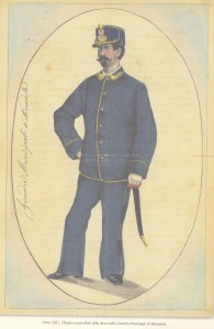 Aveva poi indossato il tabarro e calcato in testa il cappello di feltro, era sceso con prudenza dalle ripide scale poco illuminate dalla fievole luce che proveniva dal lucernario ed era uscito sulla Strada Bassa (oggi via U.Smerieri), così chiamata perché quando era stato riempito il fossato del castello il lavoro da questo lato non era stato eseguito bene ed il livello della strada era il più basso della città.