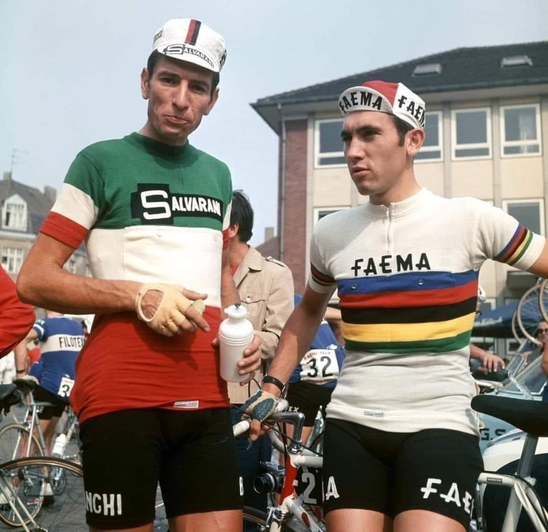 Didascalia: Anno 1968. Felice Gimondi, campione d’Italia, con Eddy Merckx, campione del mondo anno 1967.