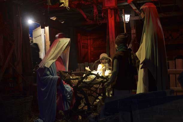 A conclusione del percorso che si svolge lungo stradine sterrate o ghiaiate, c’è la capanna di Maria e Giuseppe: il 24 dicembre notte, terminata la Messa di mezzanotte, si potrà assistere alla deposizione di Gesù nella mangiatoia.