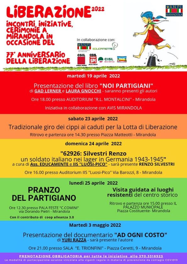 • Prenotazione obbligatoria allo 370.3316523. A cura di ANPI Mirandola