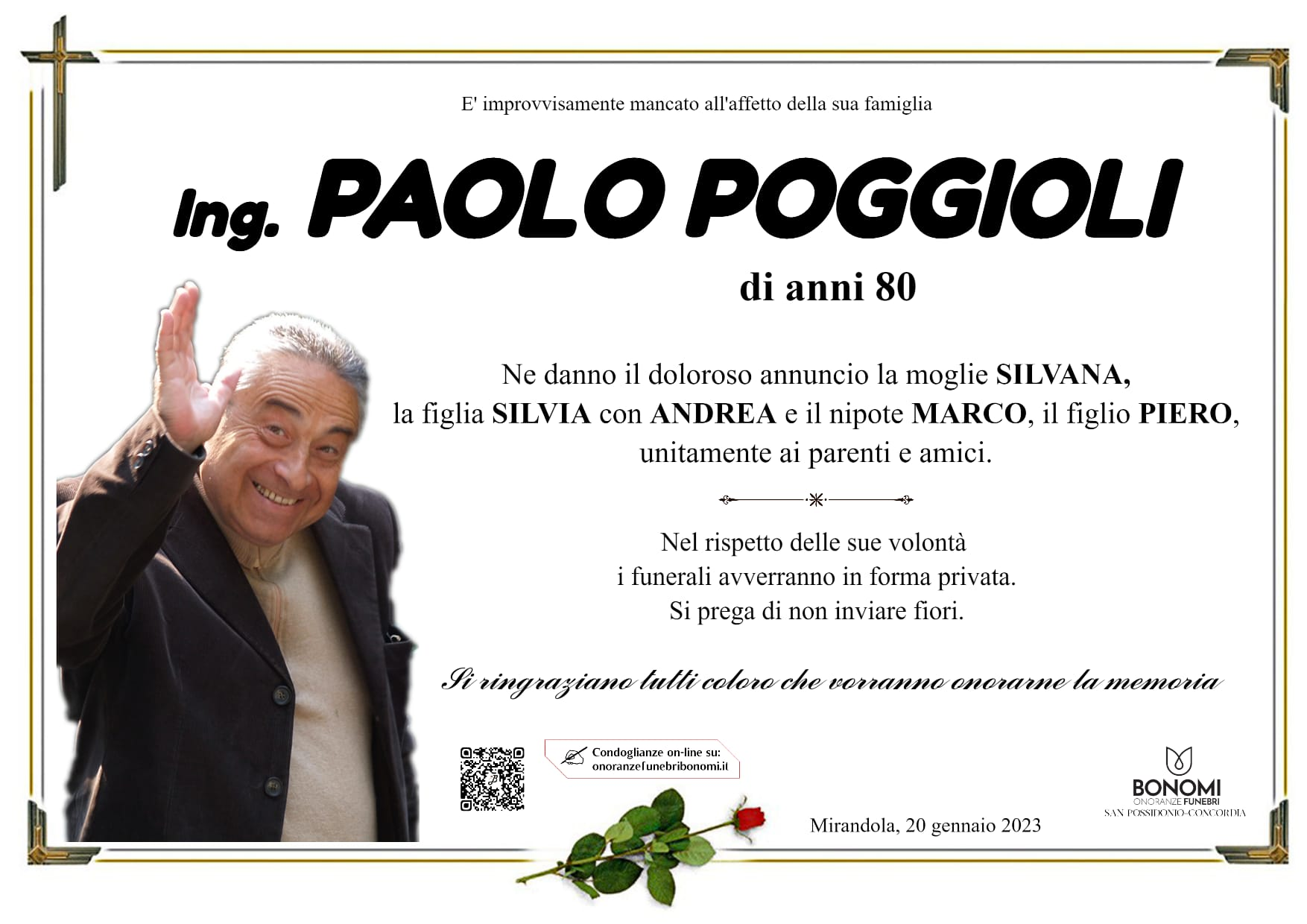Mirandola – Chi era l’Ing. Paolo Poggioli recentemente scomparso.