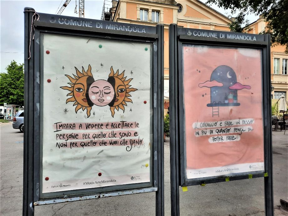 Più di 40 i manifesti motivazionali affissi in bacheche e spazi in disuso del centro storico e delle frazioni mirandolesi, tutti a firma di Enrica Mannari, artista e designer livornese protagonista di MIGCA 2022, Mirandola Galleria a Cielo Aperto. Il suo progetto #motivarte scelto dall’Assessorato alla Cultura del Comune di Mirandola, verte su di una campagna di comunicazione visiva con manifesti caratterizzati da varie frasi declinate in pensieri positivi, i quali possano innescare condotte probe e virtuose, scopo ultimo dell’iniziativa. I manifesti della Mannari, tiene a precisare l’Amministrazione comunale non pubblicizzano nulla, sono semplici messaggi motivazionali che possono fare riflettere e rincuorare chiunque si imbatta in loro per le vie della città.
