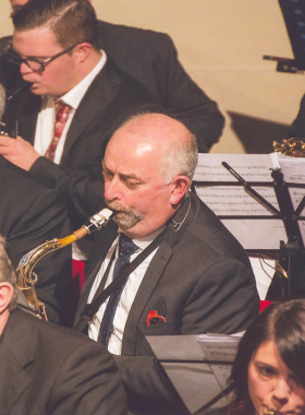 In filarmonica, dopo l’esordio con il clarinetto, nel 1982, anche per necessità di organico, passa al sax tenore, fino ai giorni nostri.