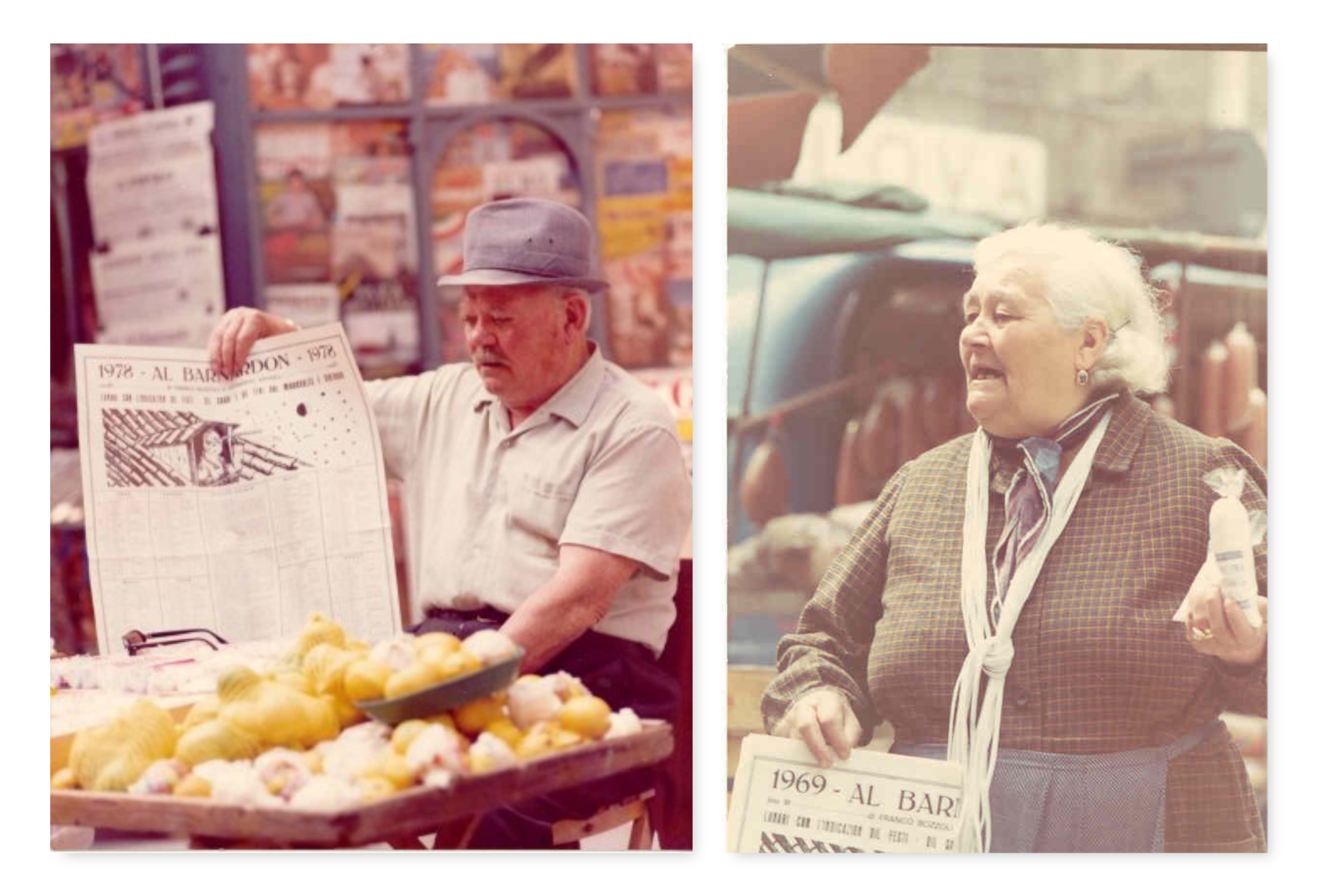 In piazza Mazzini, vicino alla grande edicola dei giornali, c’era Mascaròn con un cesto, a vendere limoni, al lùstar “furmìgon”, lacci per le scarpe, naftalina e, verso fine anno, al Barnardòn.