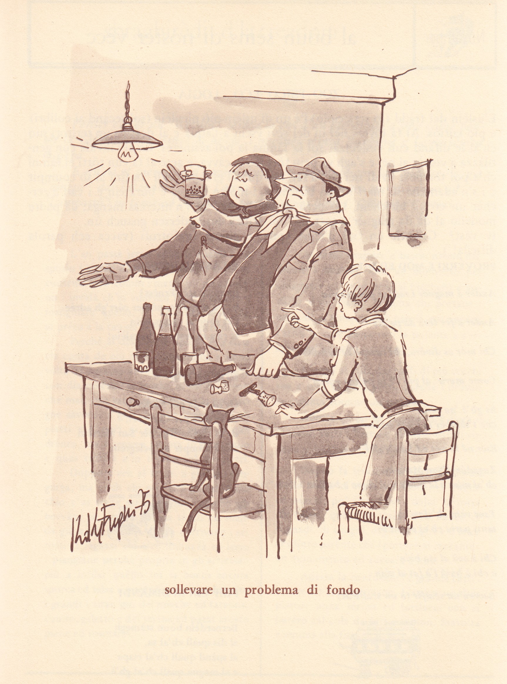 Quando un tempo si vinificava in casa (fortunatamente c’è ancora nella Bassa chi lo fa) si prendeva l’uva tipica relativa e si pigiava “coi piedi”, la fermentazione era più o meno lunga a secondo della stagione più o meno calda, in media però 3-4 giorni. Coloritamente Sandro Bellei e Ugo Preti, nel “Ricettario Modenese” a pag. 118 sottolineano: “Quando il mosto ’al tacheva a boier e a tirer sò al capel (cominciava i fermentare e ad alzare il “cappello” di vinacce) era tempo di fare il primo assaggio per decidere se spillare il vino dal tino per riporlo nelle damigiane o aspettare ancora un po’ “ch’as fésa” (che diventasse più pieno). Riposto il vino nelle damigiane. attendeva la luna adatta di febbraio o marzo per l’imbottigliamento. Levato “al vein s-cét” (il vino schietto) bisognava “sgraspèr” (togliere lo strato superiore, secco, formato dalle vinacce, il cosiddetto “cappello”) e poi aggiungere all’uva rimasta nel tino altra uva e dell’acqua. Appena messa l’acqua si togheva il “biroun” (un lungo tappo di legno che, avvolto nella stoppa, chiudeva ermeticamente il foro inferiore del tino) per lasciare uscire il liquido che veniva successivamente, e ripetutamente ributtato nel tino finché le vinacce non si erano raffreddate. Questa operazione veniva fatta verso sera. Il mattino successivo si levava il vinello, chiamato anche “sopè” un vino leggero (5-6 gradi al massimo), ideale per le prime colazioni del mattino e per calmare le invincibili arsure estive”.