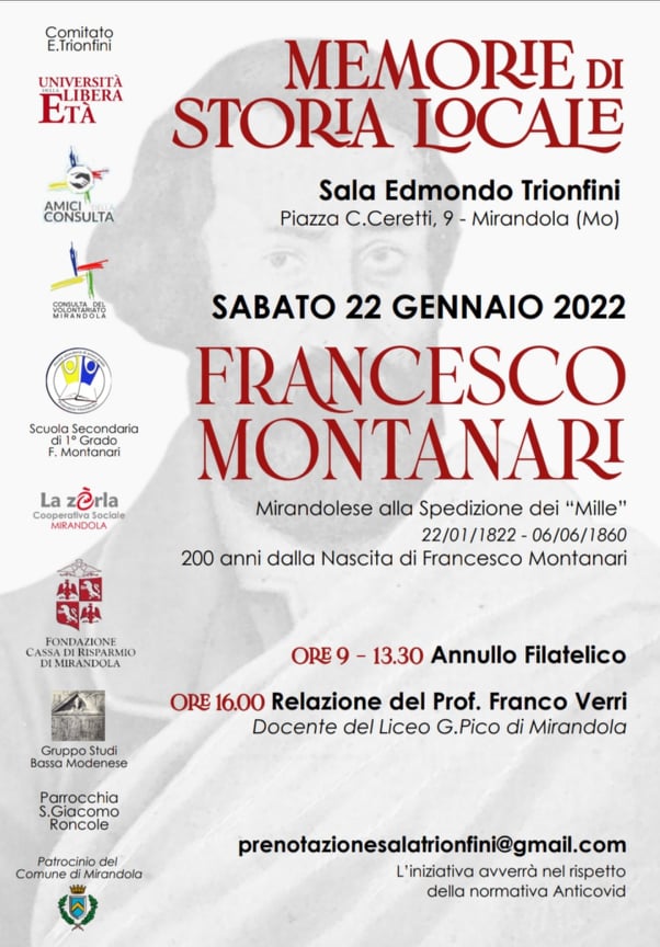 Sabato 22 Gennaio – Memorie di Storia Locale – Francesco Montanari