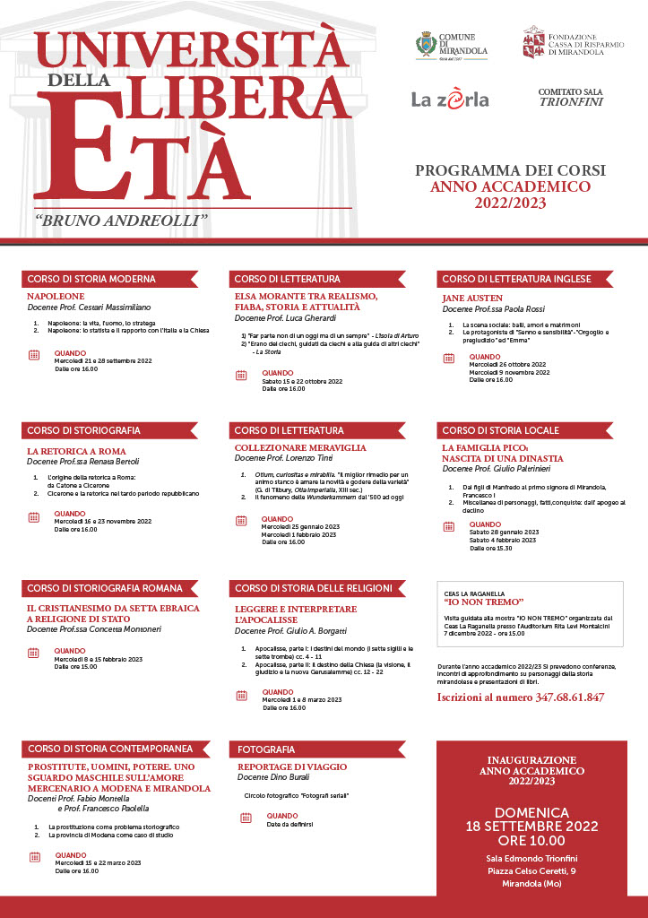 Sabato 28 Gennaio a Mirandola – Università della Libera Età