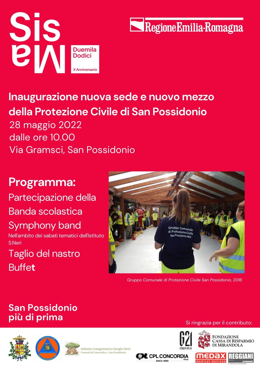 Sabato 28 Maggio a San Possidonio – Protezione Civile, inaugurazione nuova sede e nuovo mezzo