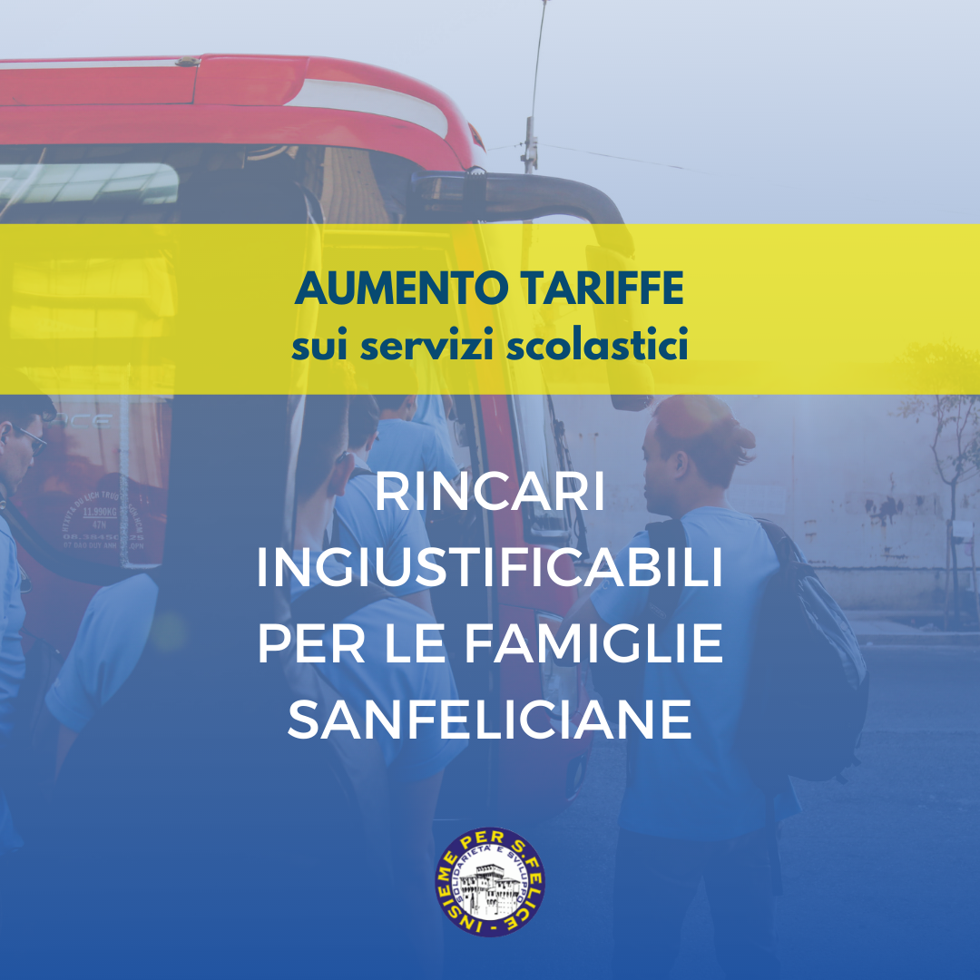 In questi giorni i genitori sanfeliciani hanno ricevuto la comunicazione delle tariffe sui servizi scolastici e sono diverse le segnalazioni che ci arrivano rispetto agli aumenti che purtroppo sono diventati realtà.