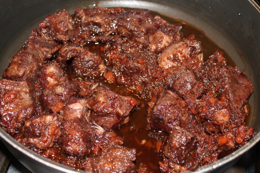 La carne che si adopera è il collo bovino, è poco costoso e ideale per la preparazione di umidi e stracotti.
