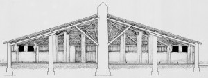 Strutturalmente il barchessone Barbiere è l’unico dei cinque caratterizzato dalla presenza di una doppia corona di saettoni di legno incastrati alla colonna centrale, invece di una sola. (Foto 6)
