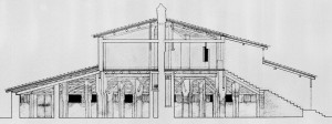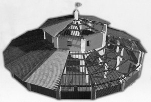 Oltre al saettone, i puntoni hanno altri due appoggi, uno sul pilastro interno, l’altro su quello perimetrale; altri pilastri, di dimensioni minori, dividono in due ogni lato provvisto di vedute ed in tre partì ognuno dei quattro lati di accesso: essi servono da appoggio ad una raggiera di puntoni intermedi di lunghezza pari a metà falda.