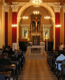 Già almeno dalla prima metà del sec.XVII0, come risulta dalla visita Pastorale del 23-Giugno 1640 sorgeva in Borghetto un piccolo oratorio dedicato alla Madonna che era dipinta a fresco in un atteggiamento soavemente materno col Santo Bambino in braccio.