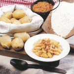 Per il ripieno: tre etti di mandorle, tre etti di amaretti, tre etti di zucchero, mezz’etto di cacao zuccherato in polvere, un etto e mezzo di burro, liquore Sassolino, liquore Amaretto. Per le tagliatelle: tre uova, tre etti di farina.