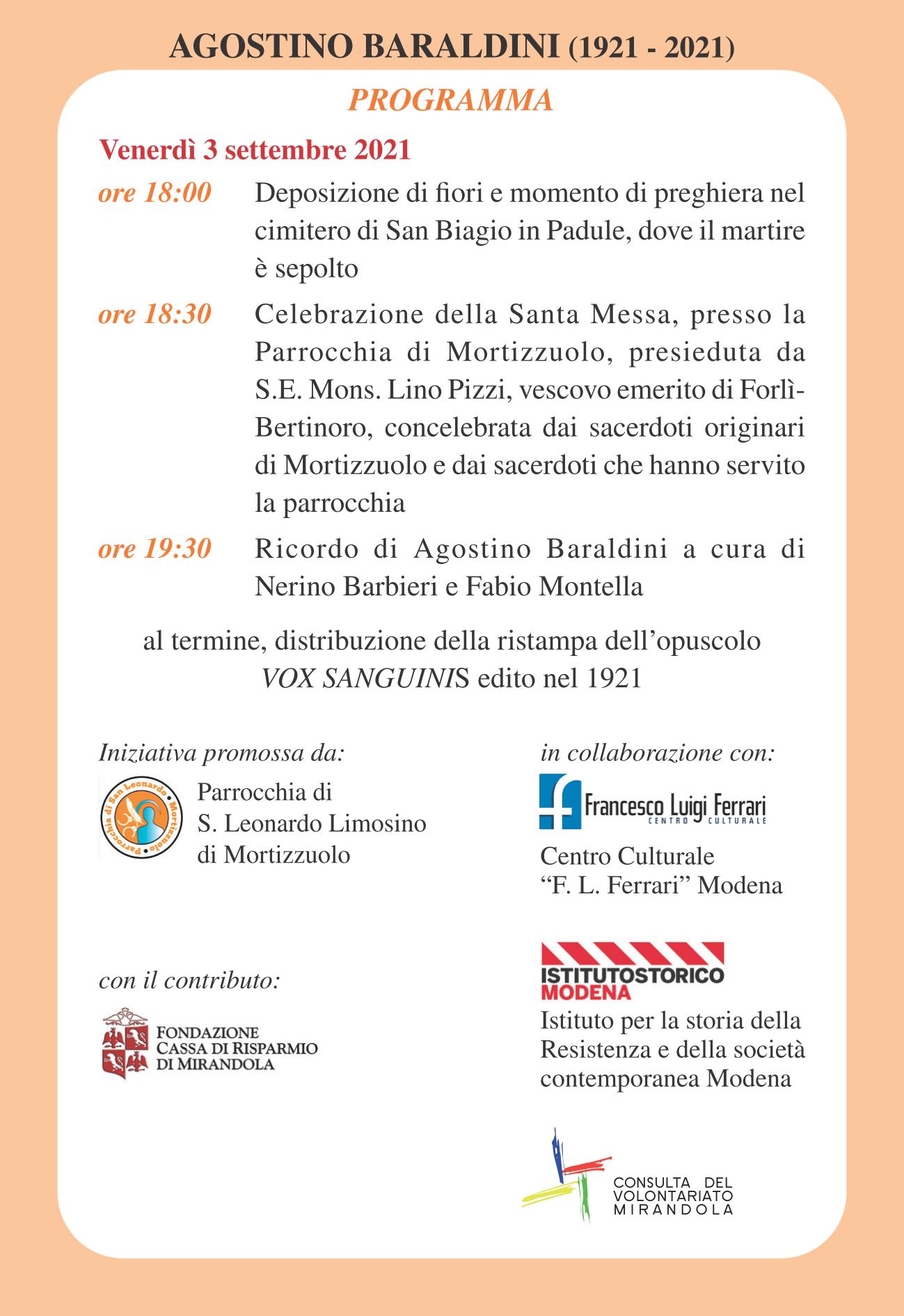 Il 17 agosto 1921 veniva assassinato, da un gruppo di fascisti, il giovane Agostino Baraldini. A 100 anni dalla morte la parrocchia di Mortizzuolo ha promosso alcuni eventi per ricordarne il martirio.